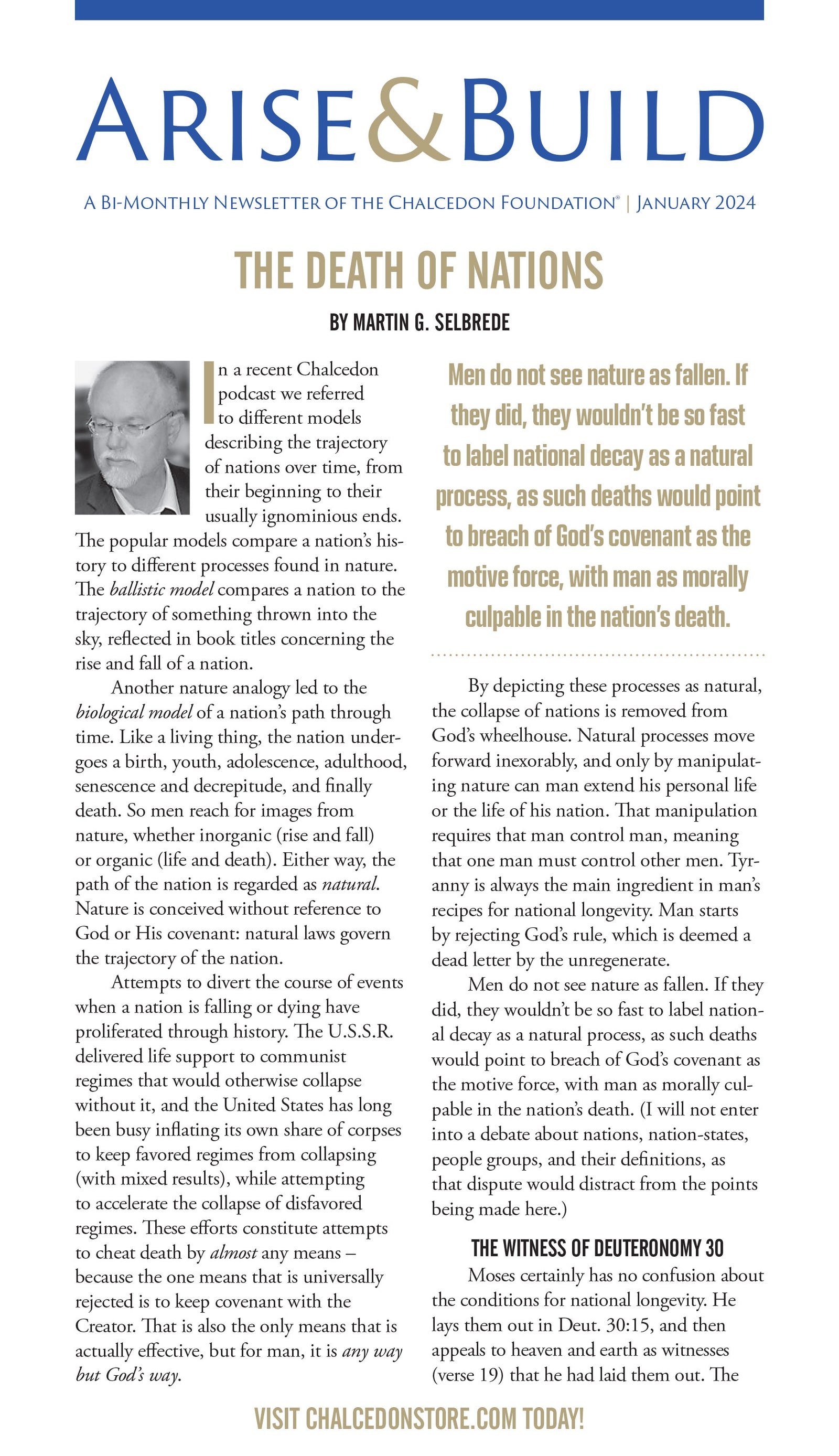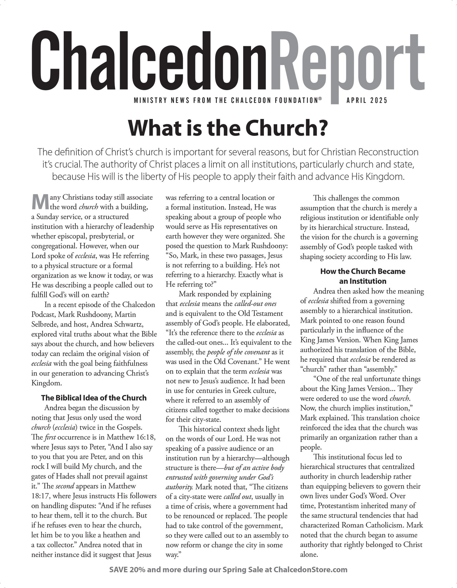 Chalcedon will be closed October 13 for Columbus Day.